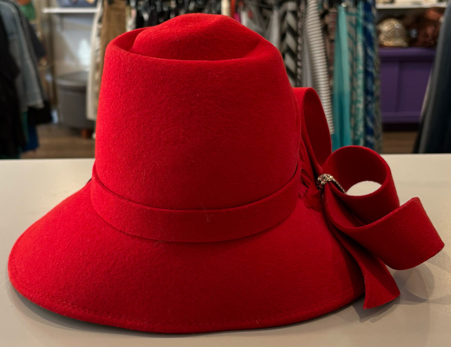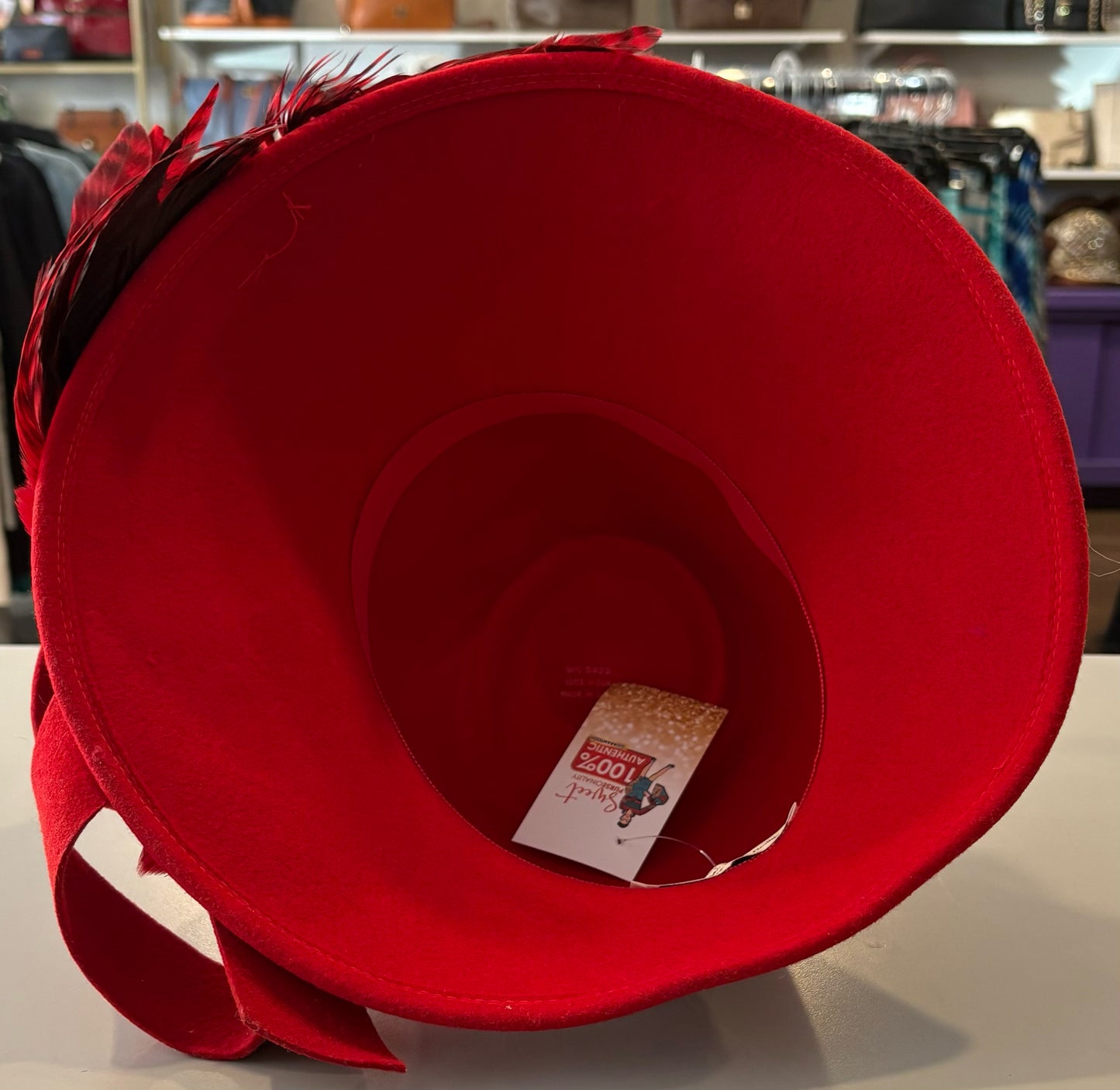 NWOT Brenda Waites Bolling Red 100% Wool Hat with Feathers & Rhinestones