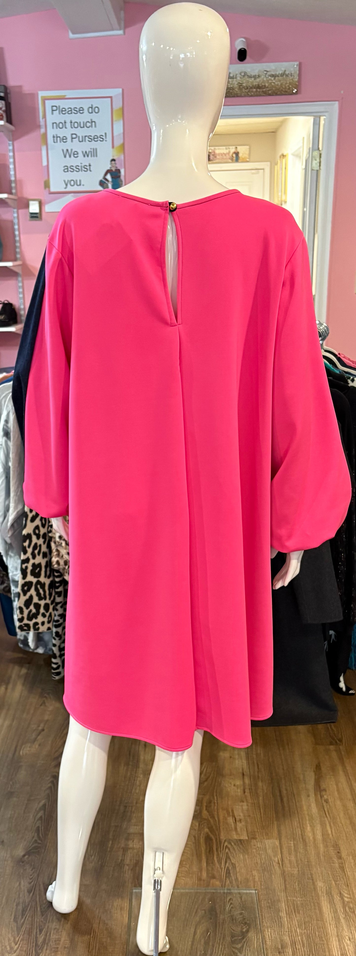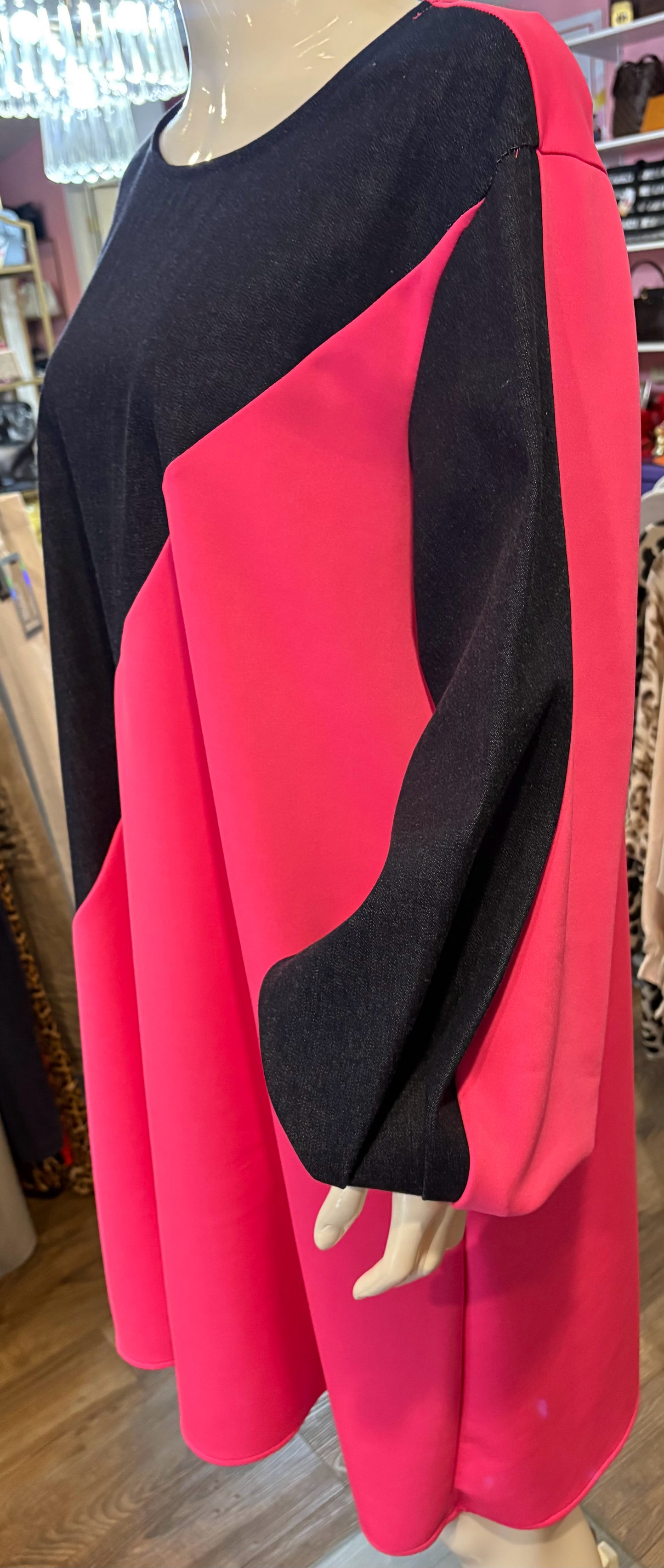 NWOT Karen T Design Denim & Pink Dress Size: L