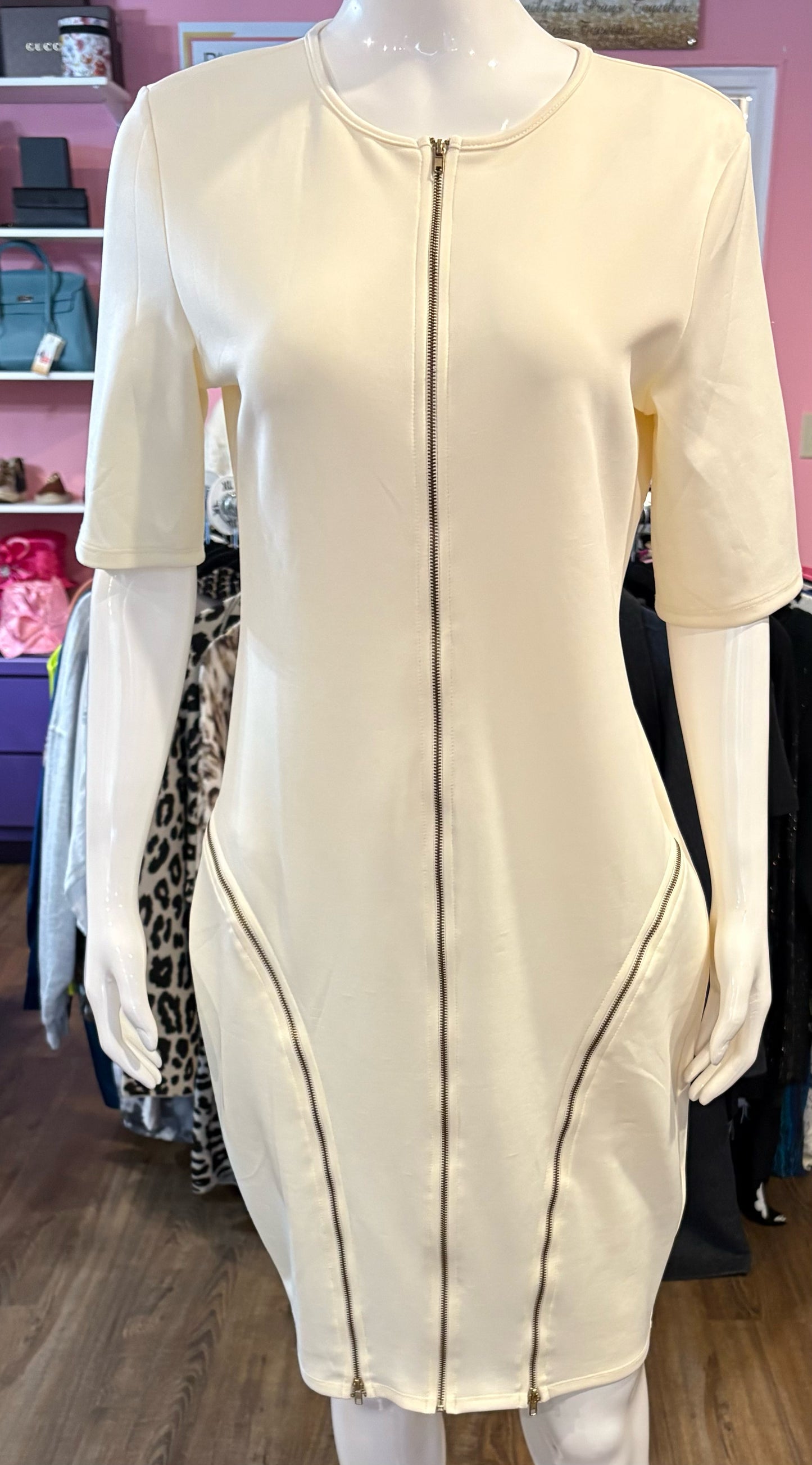 NWT charlotte russe K + Glam Cream Dress with Zipper Detailing Size: 3X