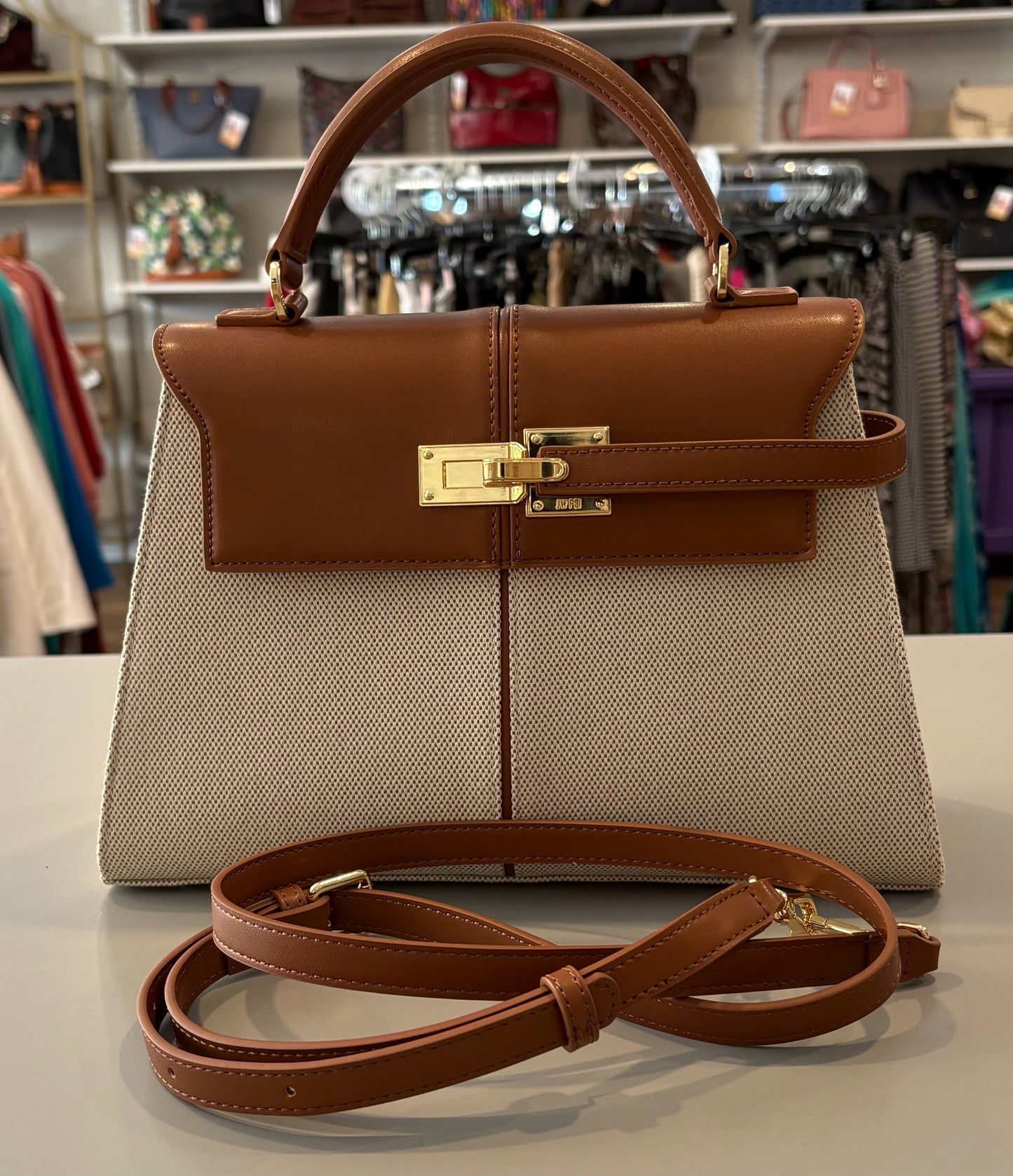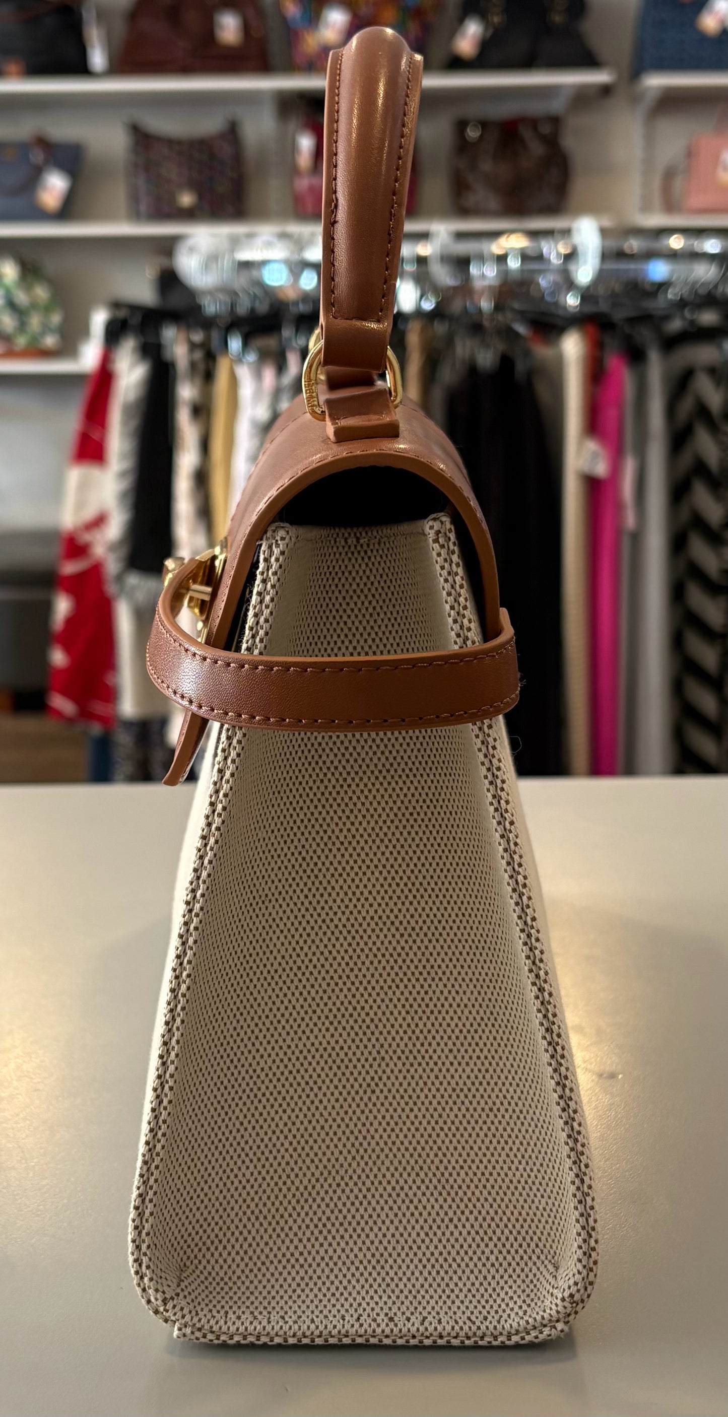 JW PEI Elise Brown Canvas Large Top Handle Bag