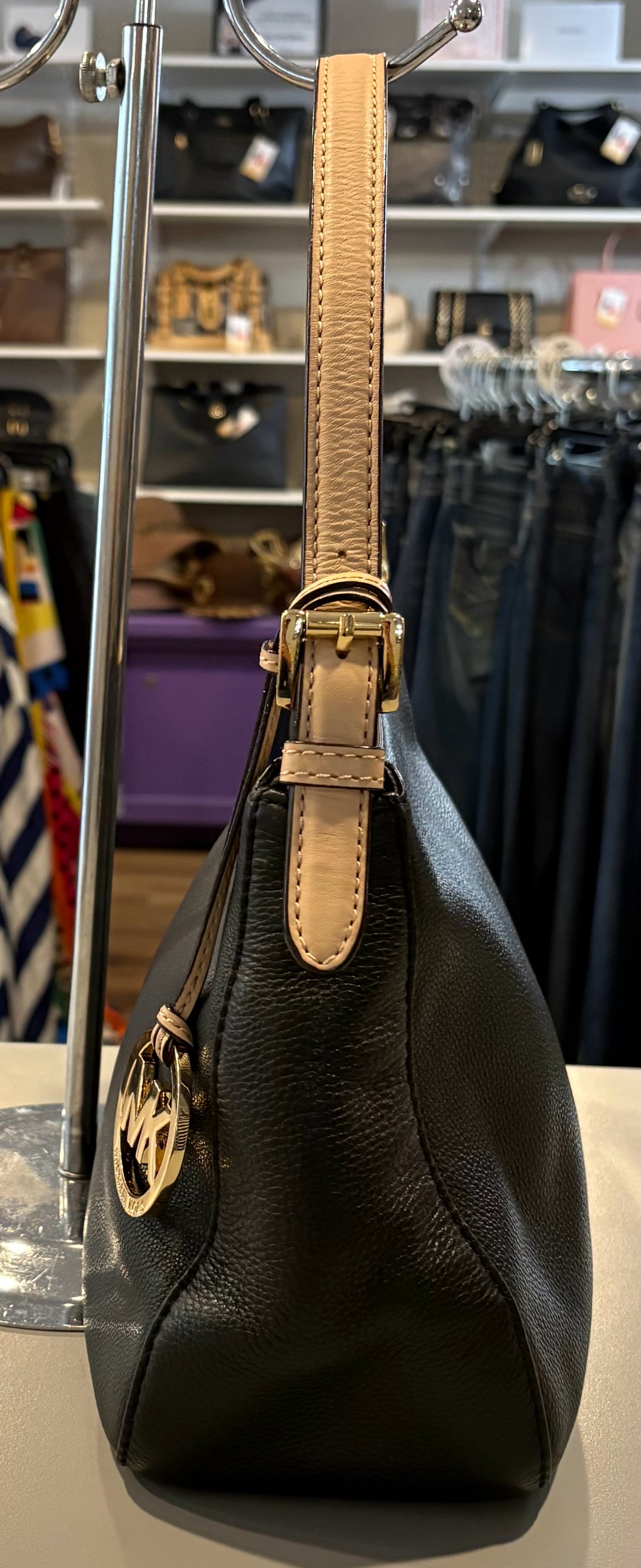 Michael Kors Black Pebble Leather Shoulder Bag
