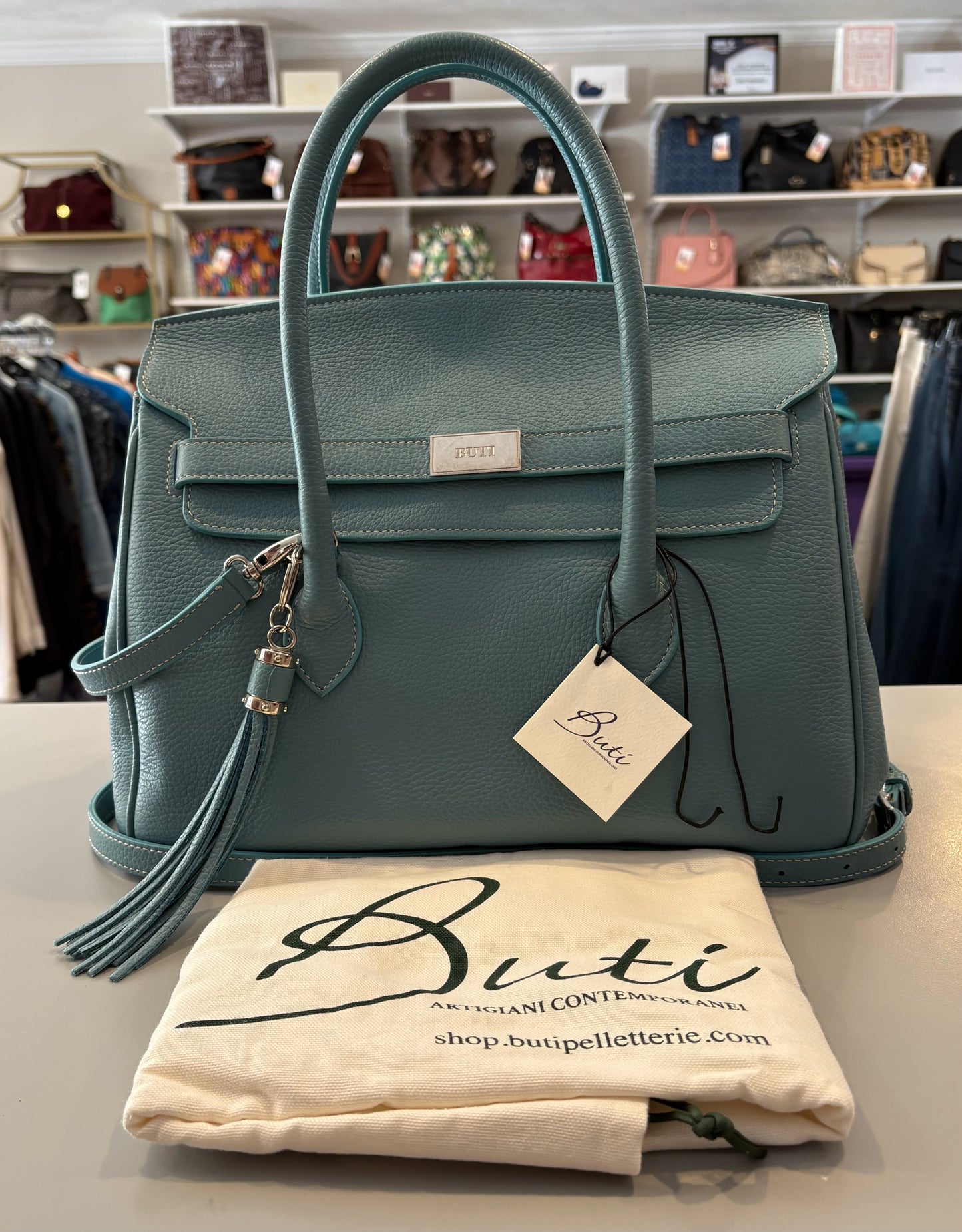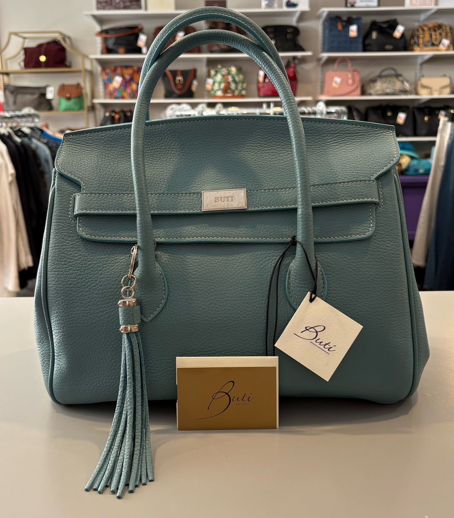 RARE Buti Pelletterie Capri 30 Alce Stampato in Light Teal