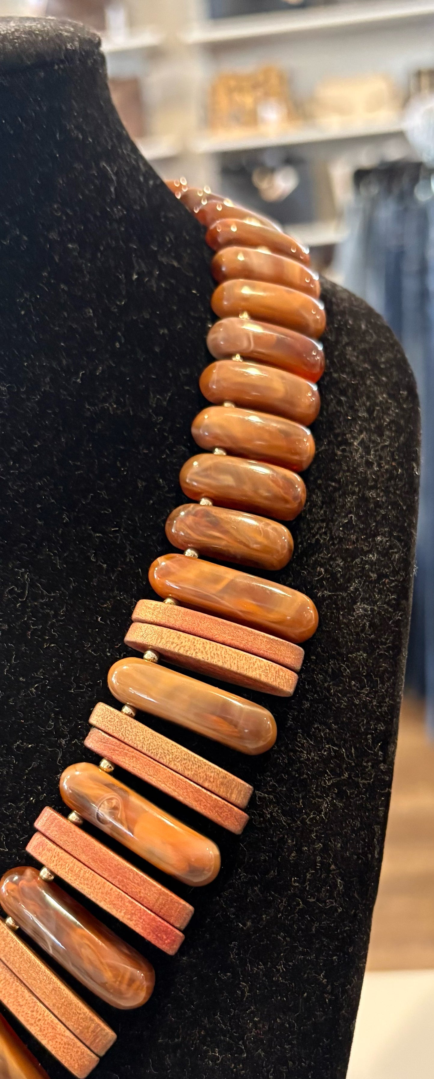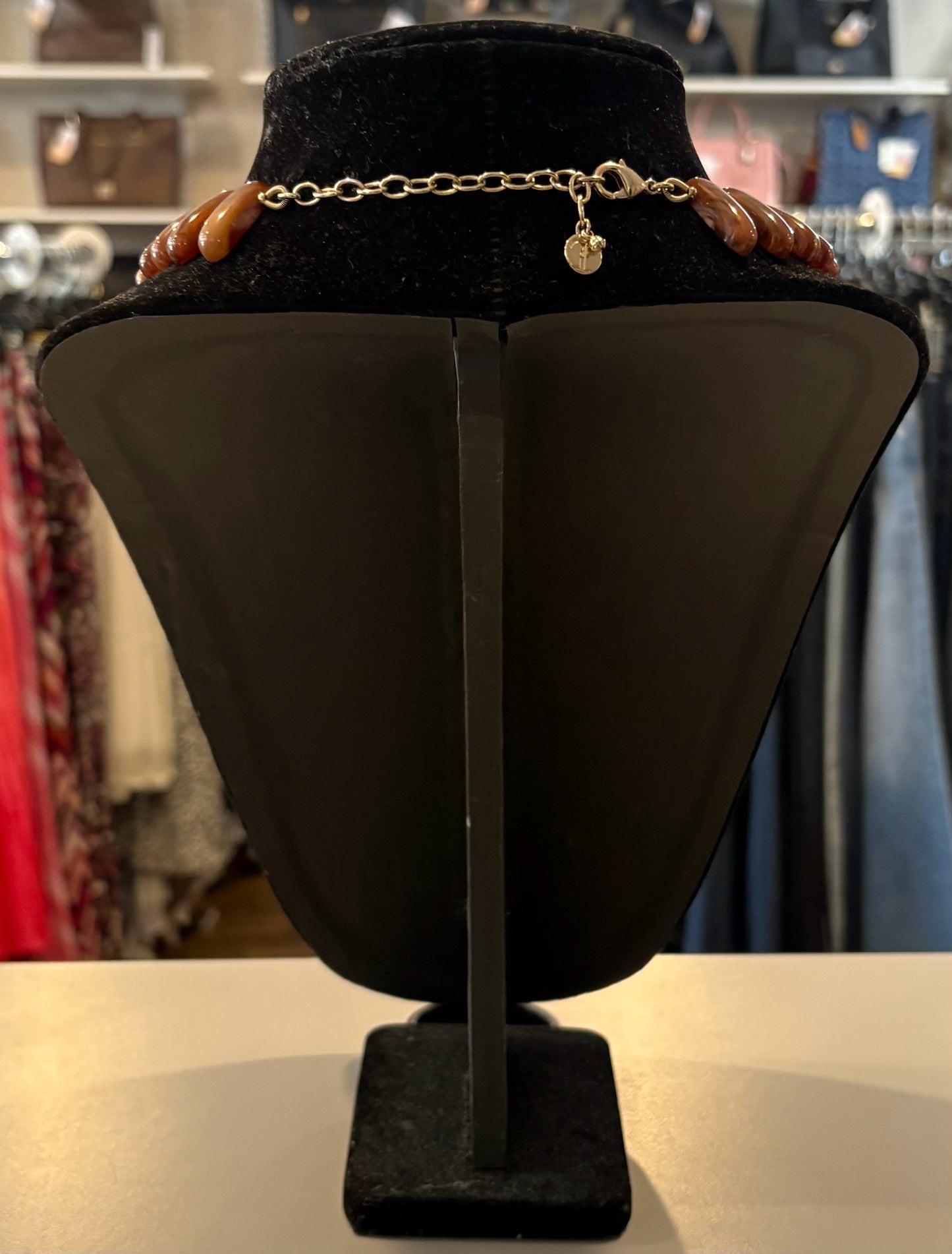 NWOT TALBOTS Brown Lucite Wood+ Beads Choker Necklace