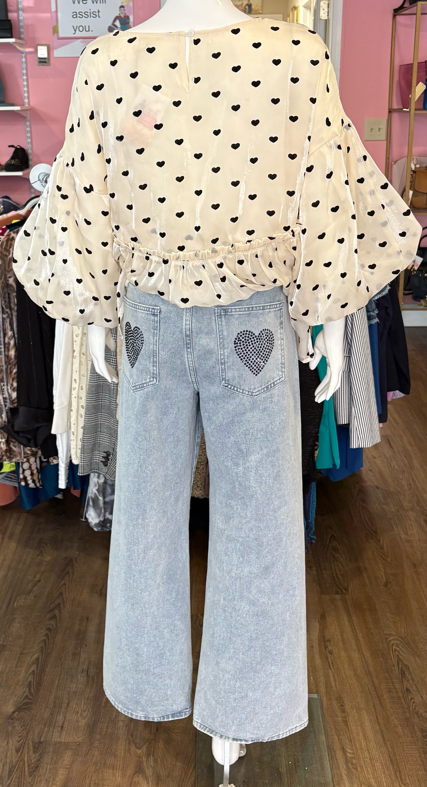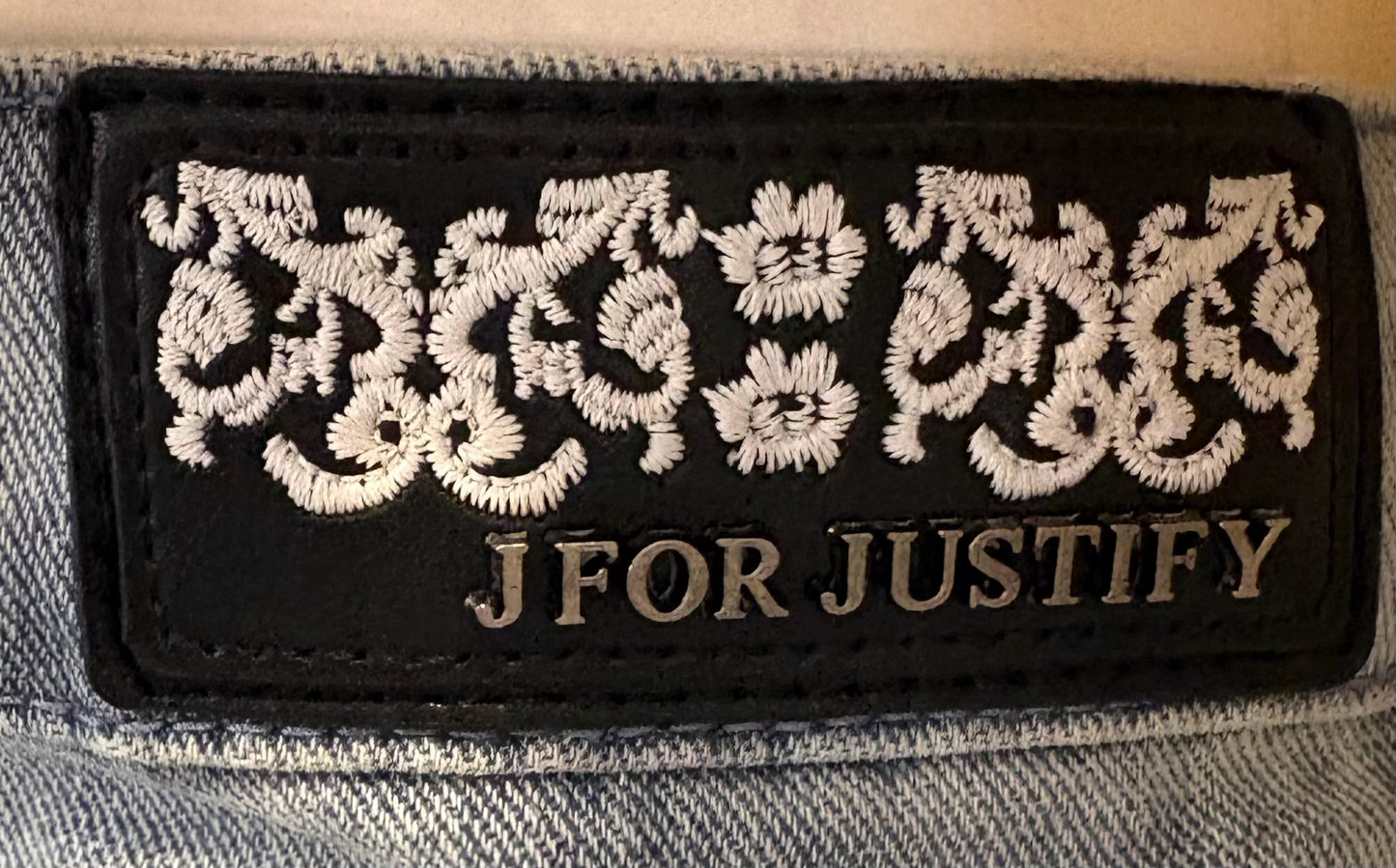 NWOT J FOR JUSTIFY Light Wash Jeans with Heart Rhinestone Detailing Sz:L