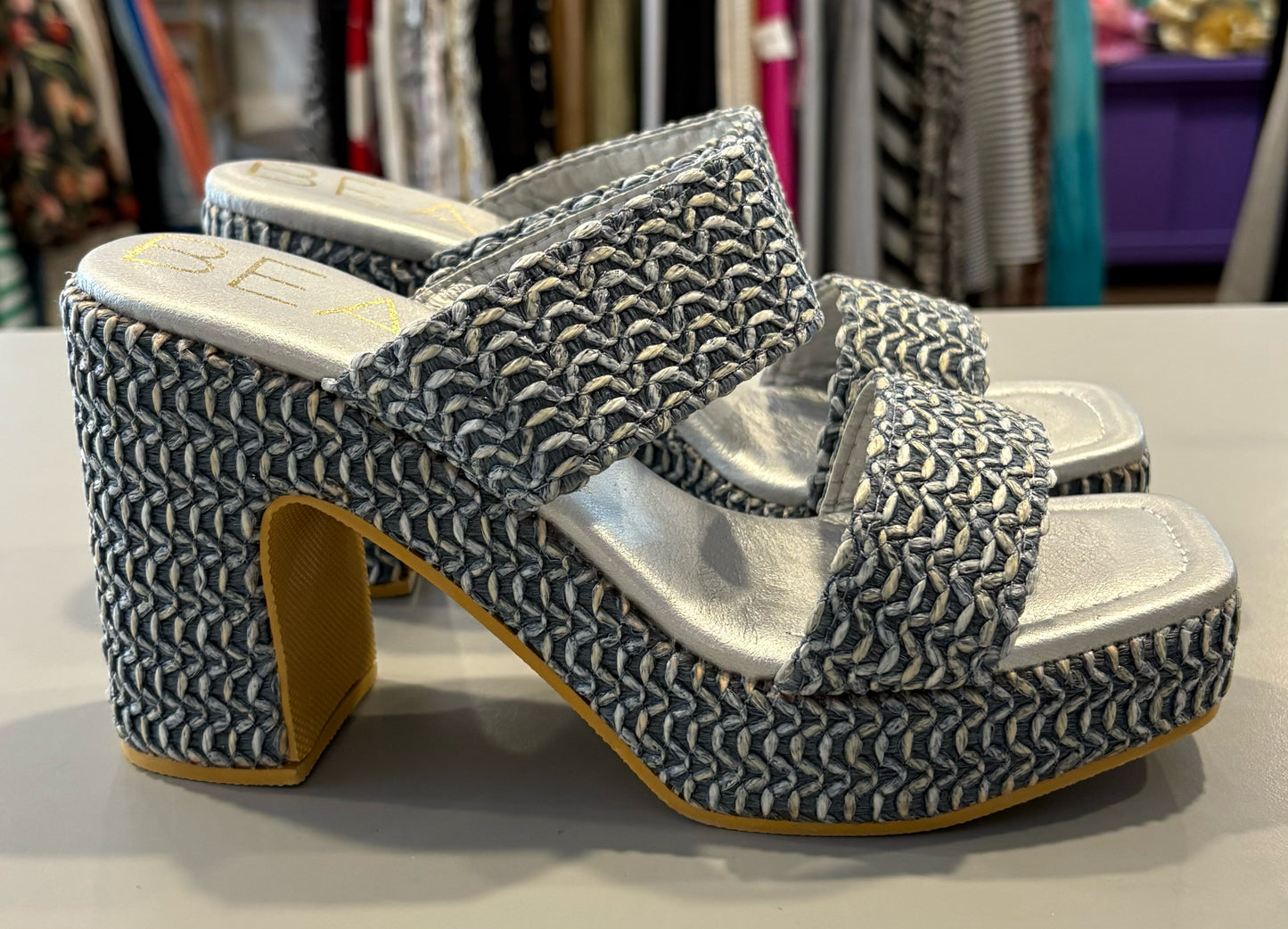 Beach by Matisse Blue Woven Platform Sandal Heels Size:10M