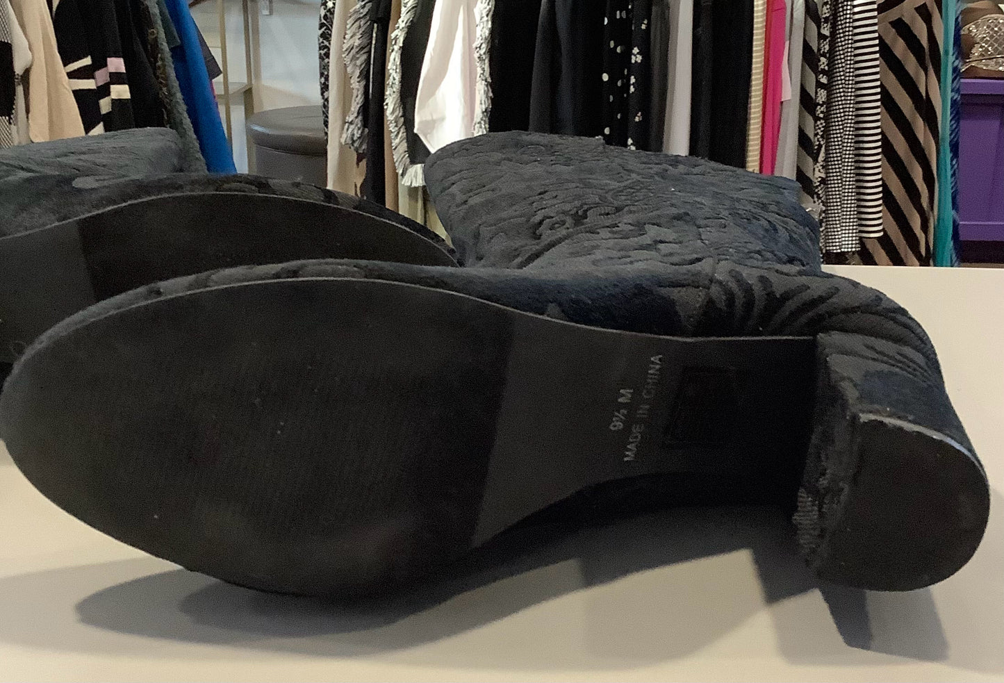 Midnight Velvet Brocade Black Boots Size:9.5M