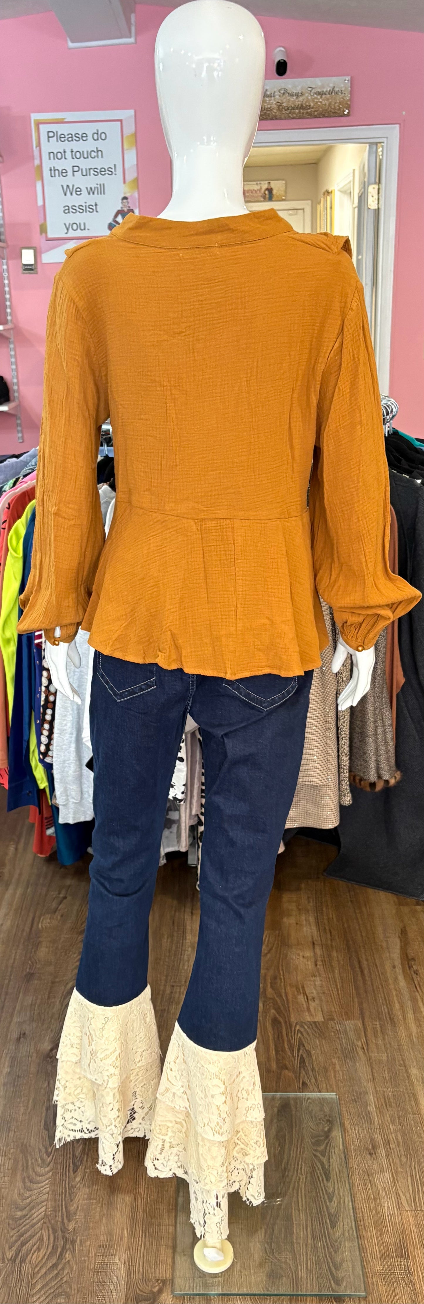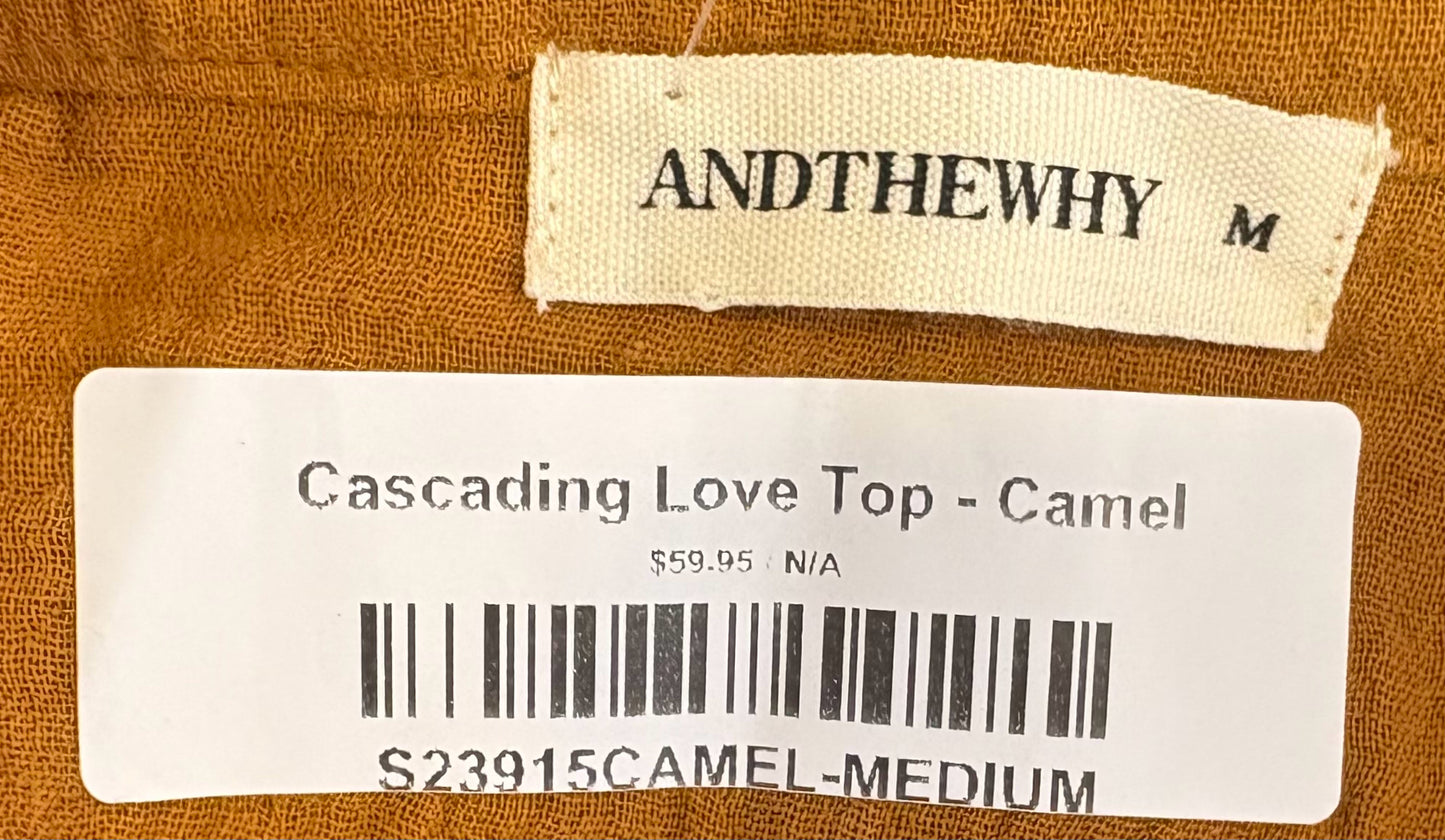 NWT AndTheWhy Ruffle Front Blouse in Camel Size: M