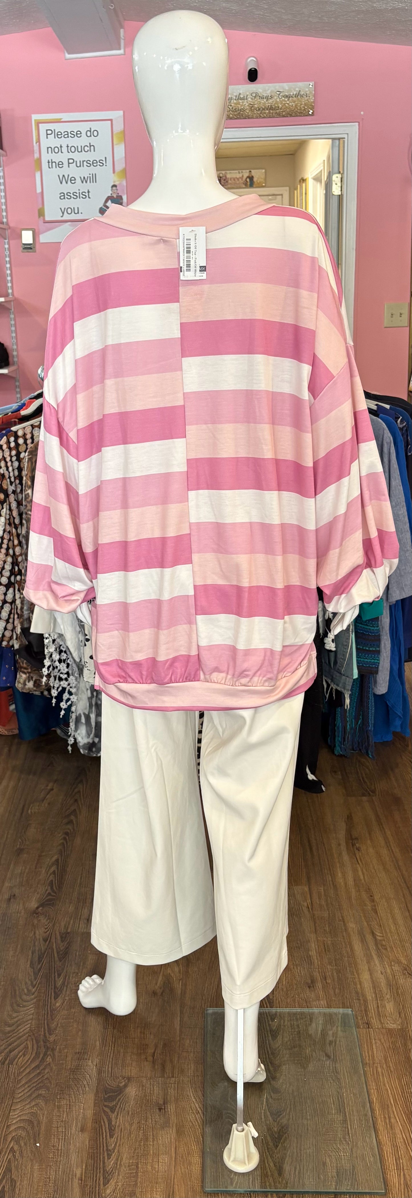 NWT Fantastic Fawn Pink & Off White Striped Sweatshirt Size: L