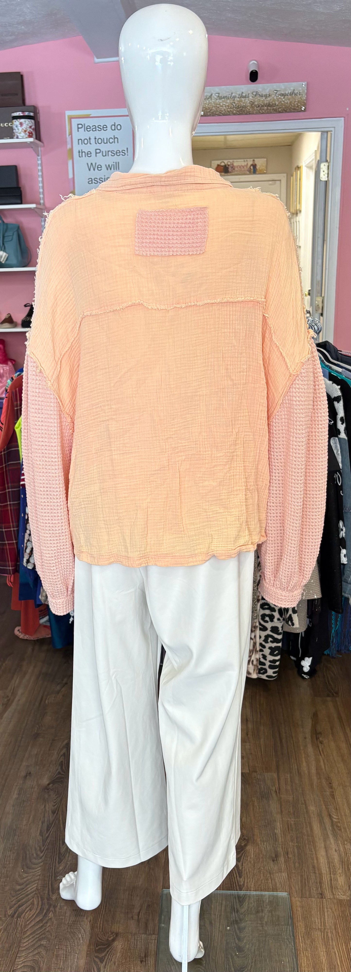 POL 100% Cotton Peach Pink Button Up Sweater Top Size: L