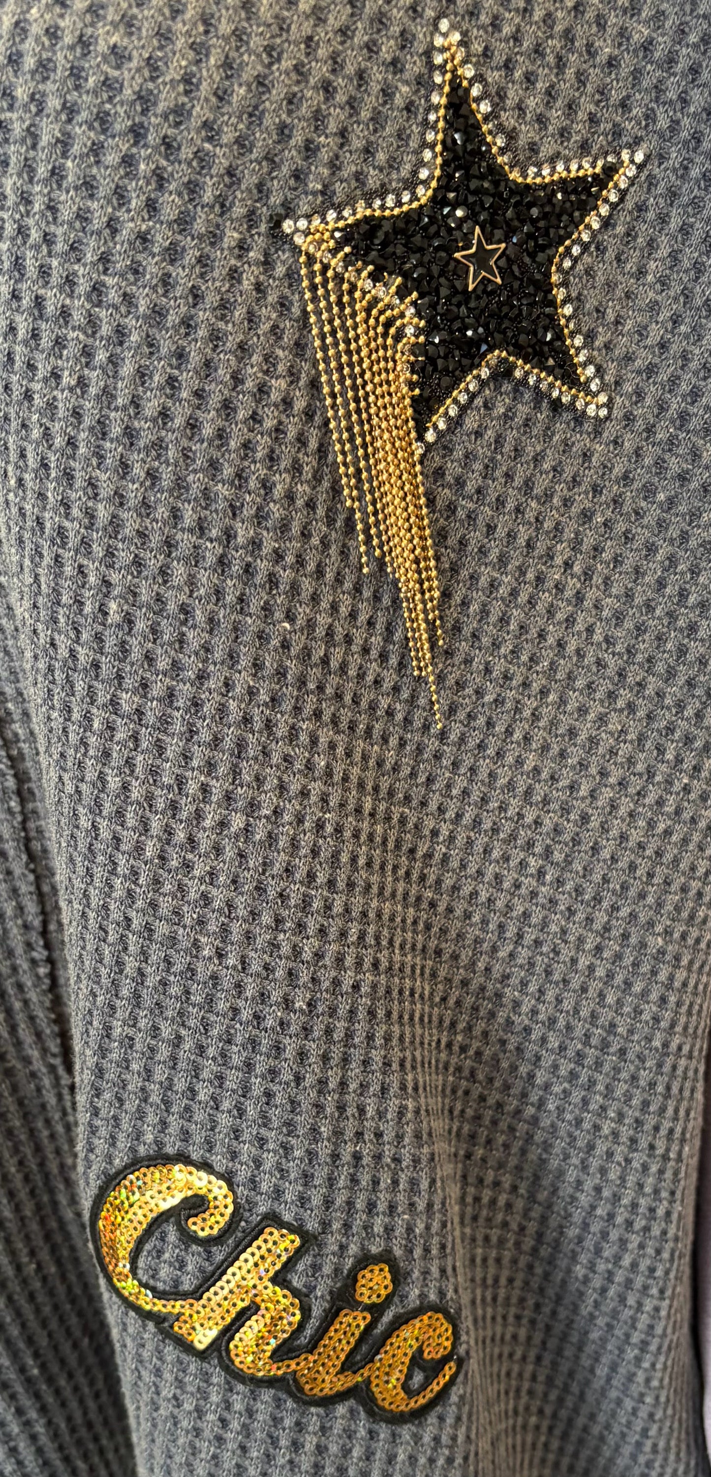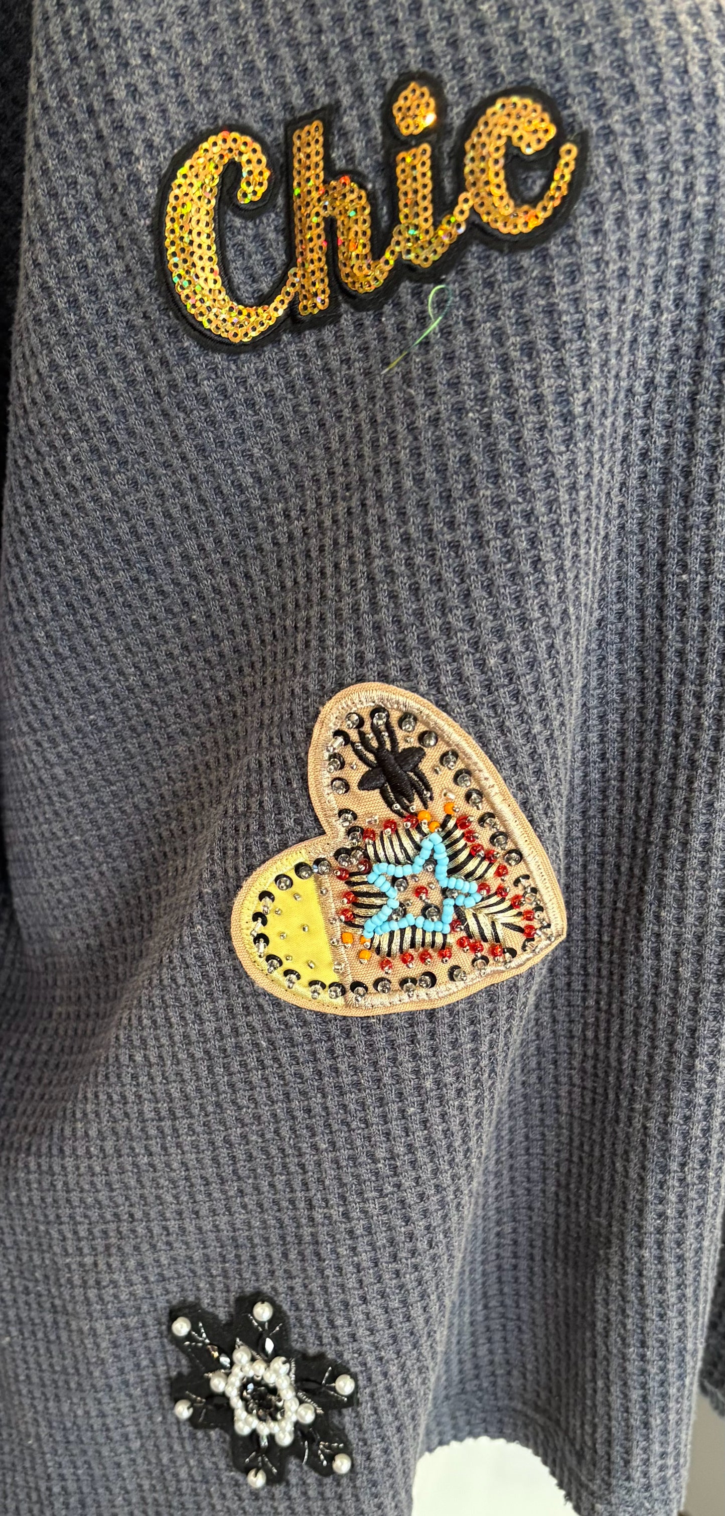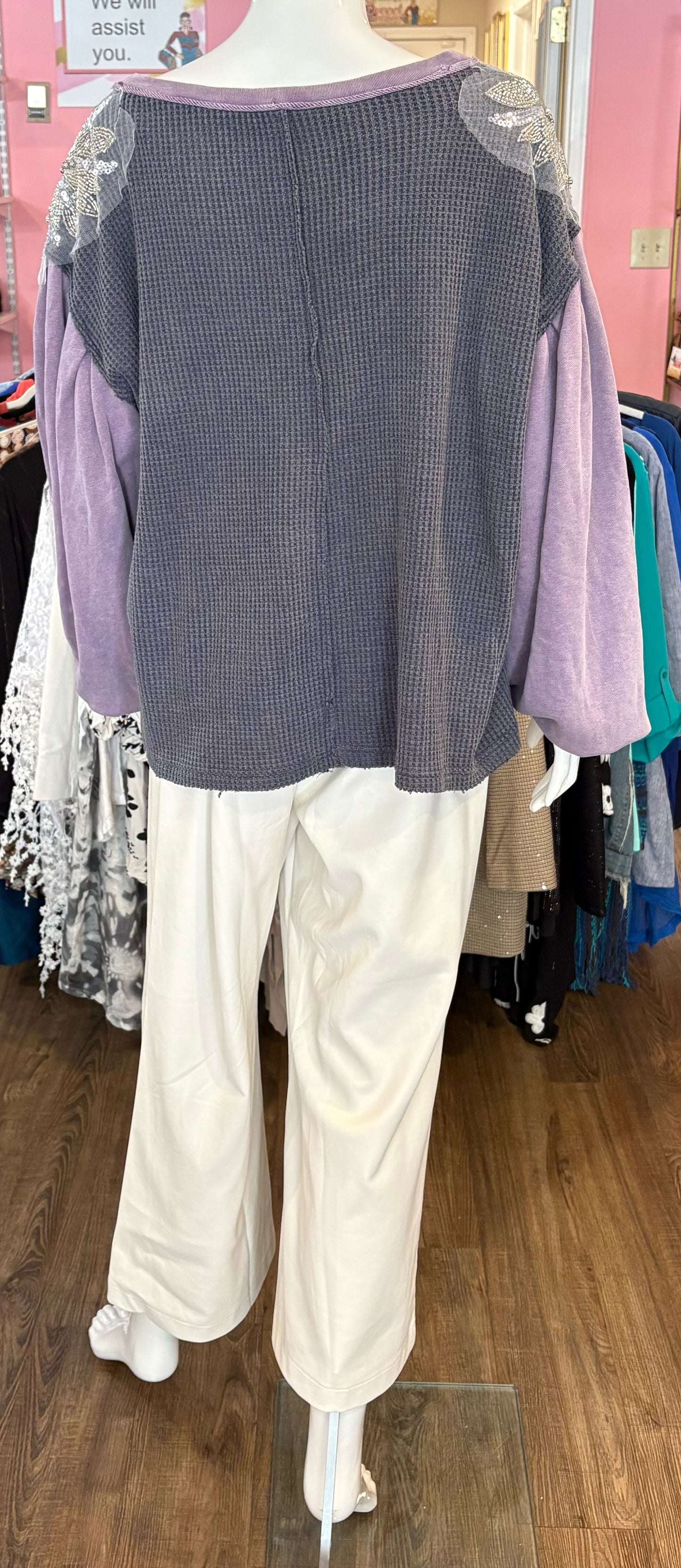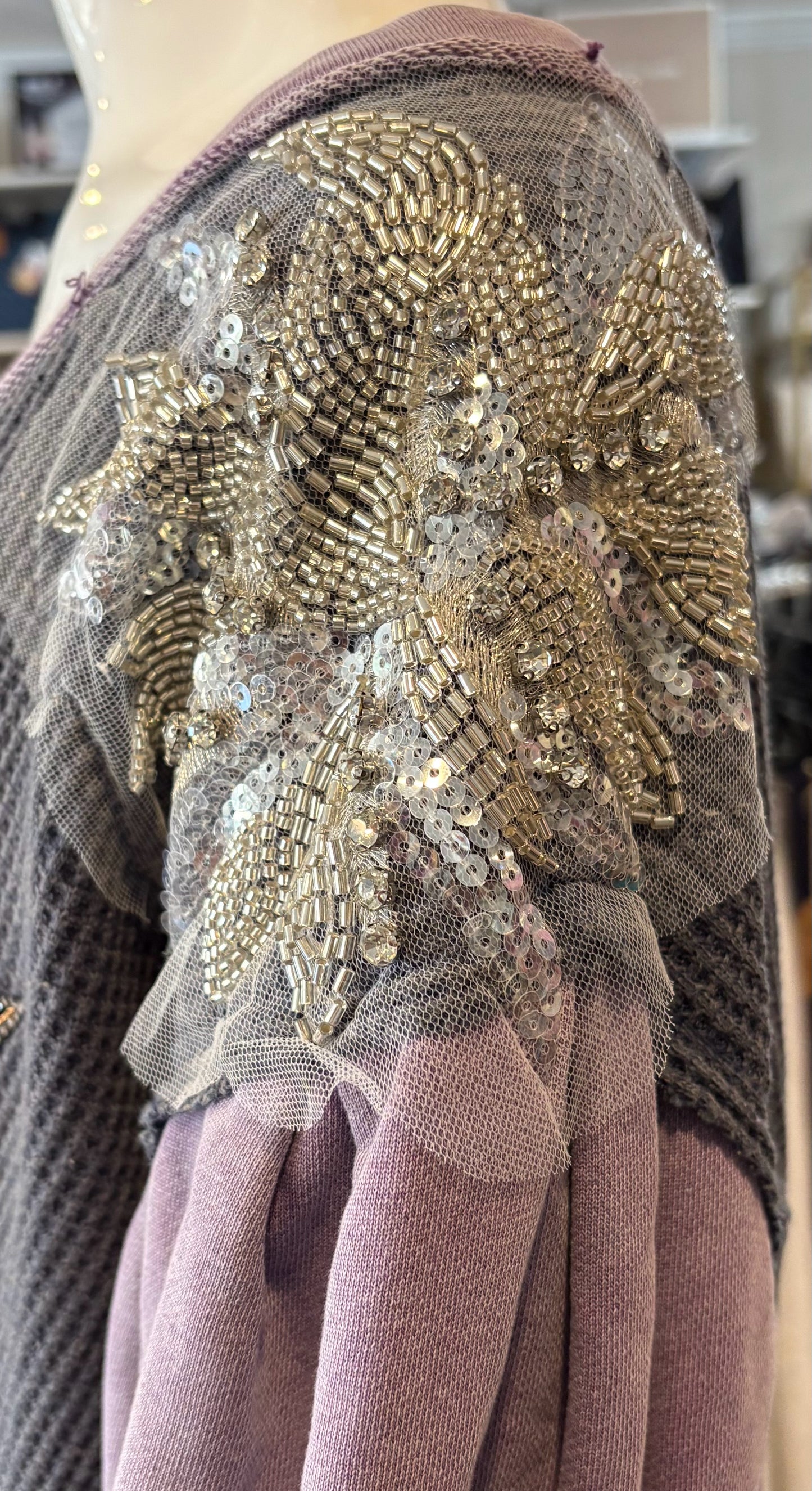 Pol Embelleshed Decal Purple Oversized Sweater Top Size:M