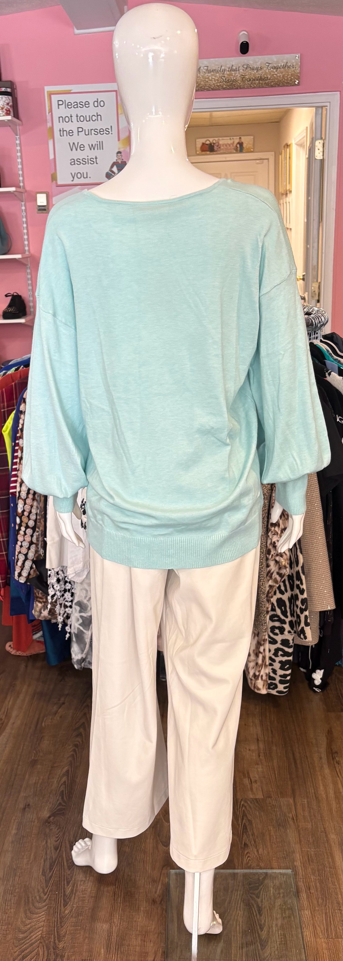 Vine & Love Light Square Neck Blue Sweater Top Size:L