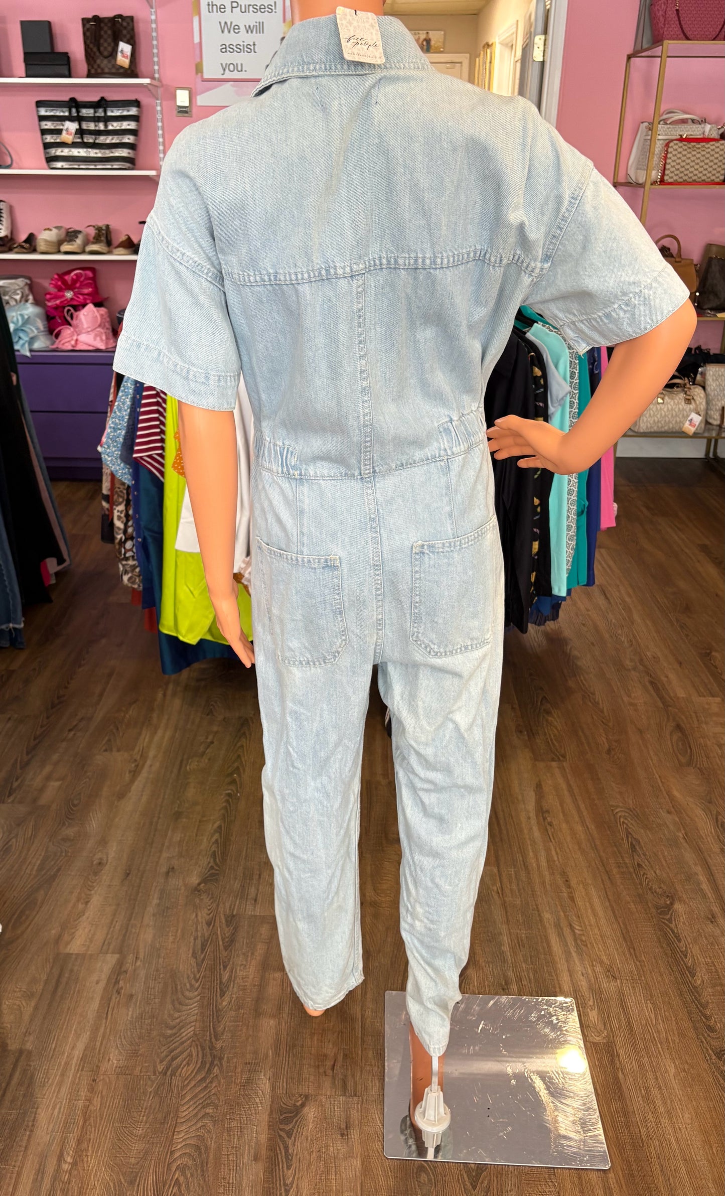 NWT Free People Denim Jumpsuit in the Color Clear Skies Size:XS