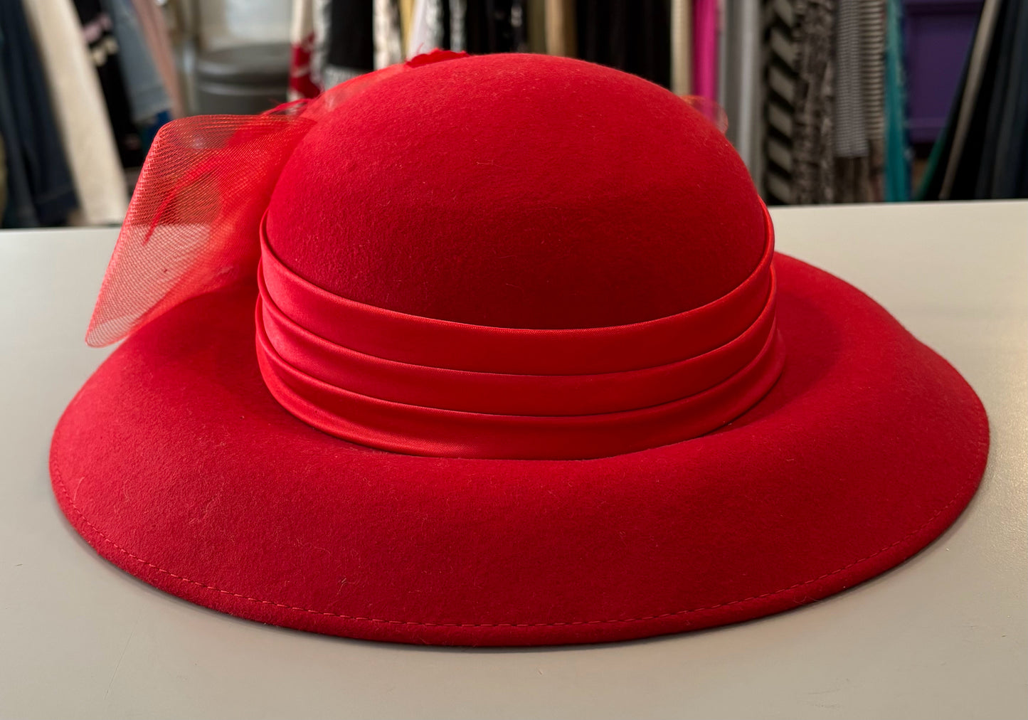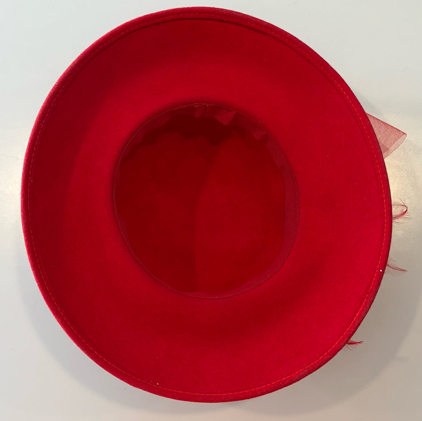 Red 100% Wool Dress Hat with Floral Bow Detailing